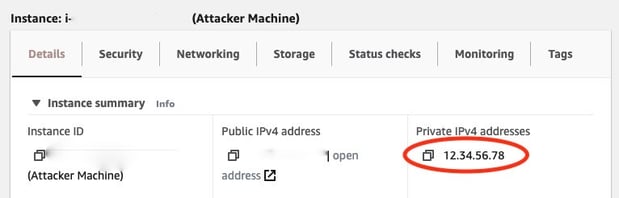 We created a VPC with a private IP CIDR block of our choice (12.34.56.0/24) in our private AWS account (attacker account "A").